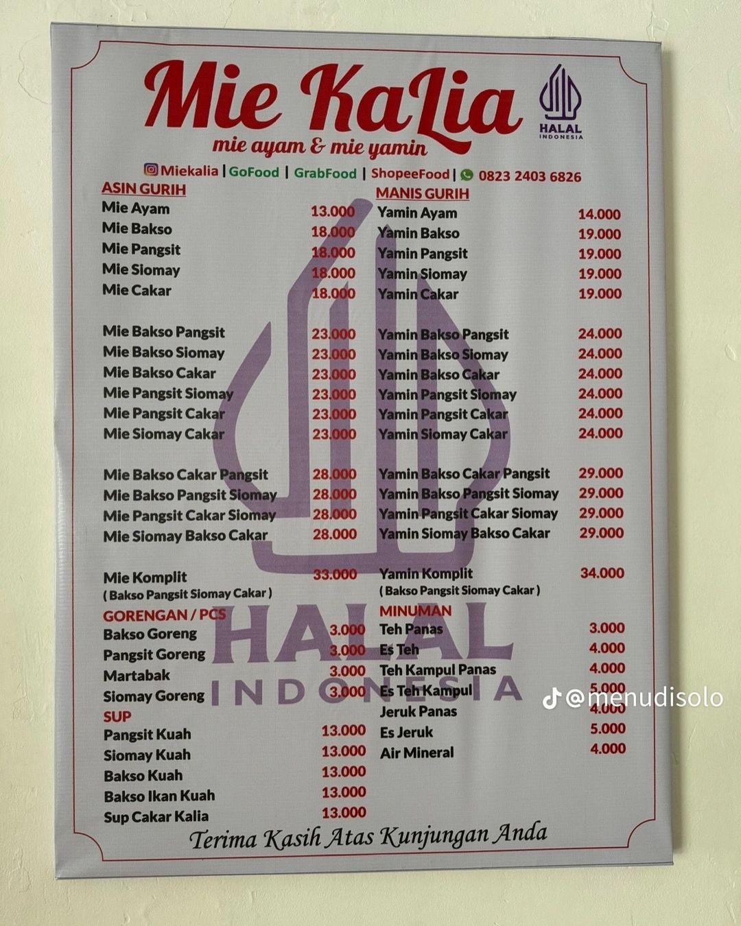Daftar Harga Menu Mie Kalia Cabang Kota Solo Mie Pedas Enak ( Source : from @menudisolo )