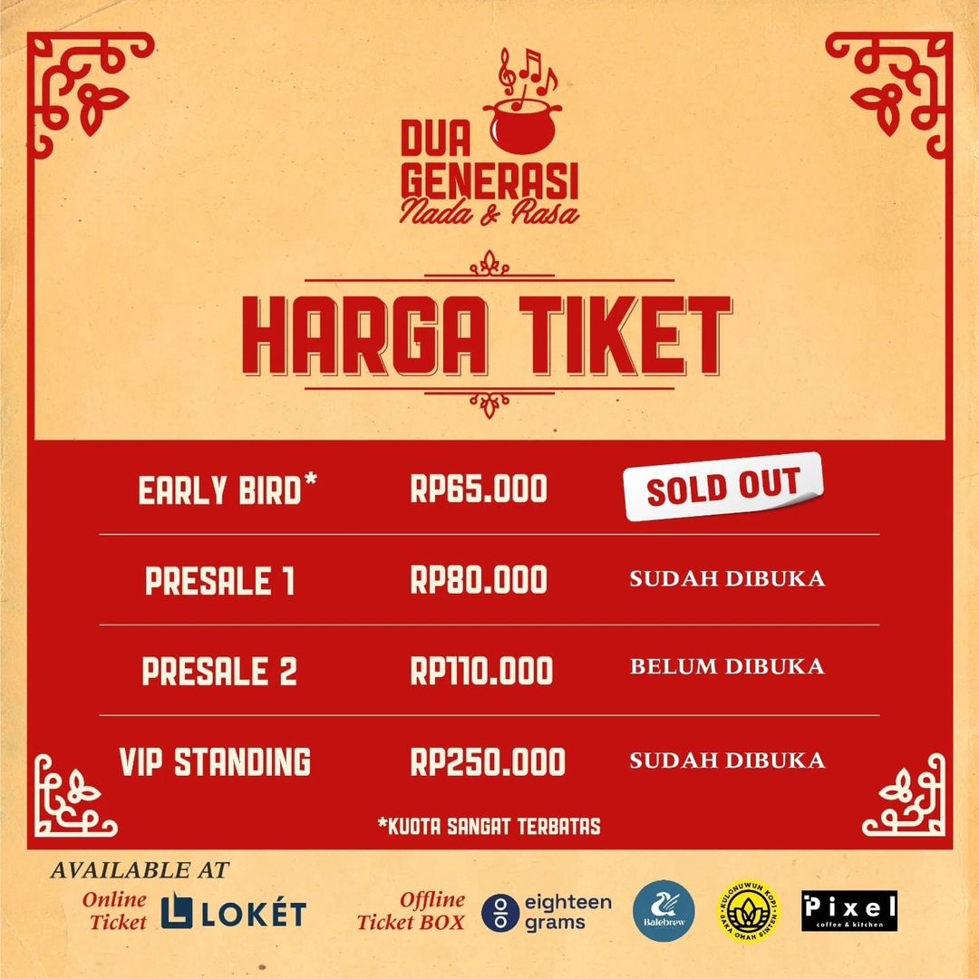 Tiket Konser Musik Dua Generasi sudah dapat dibeli melalui [loket.com](http://loket.com) dan Official Tiket Box kami