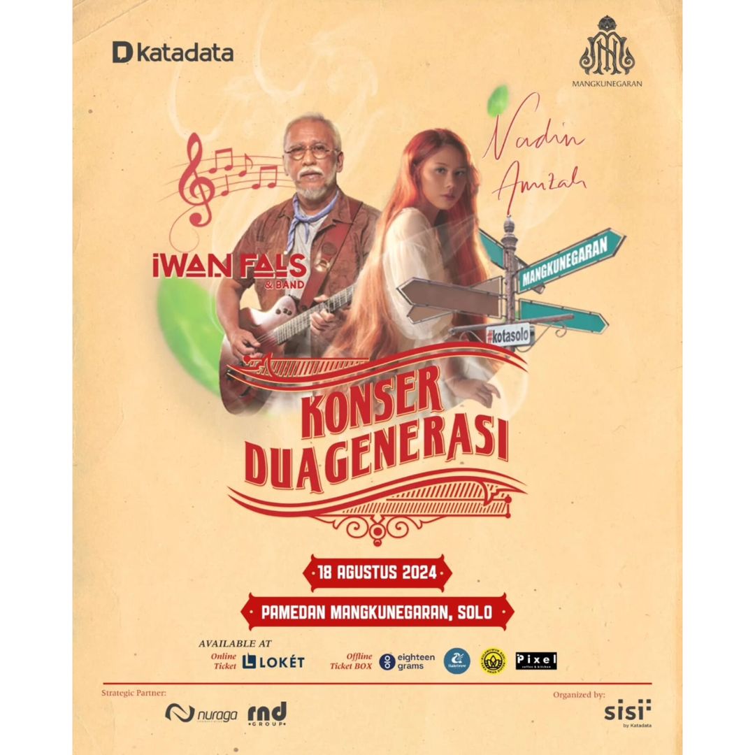 Jangan lewatkan, perhelatan Konser Musik Dua Generasi pada tanggal 18 Agustus 2024 yang menampilkan musisi dari dua generasi, yaitu Iwan Fals (@iwanfals) dan Nadin Amizah (@cakecaine) ????
