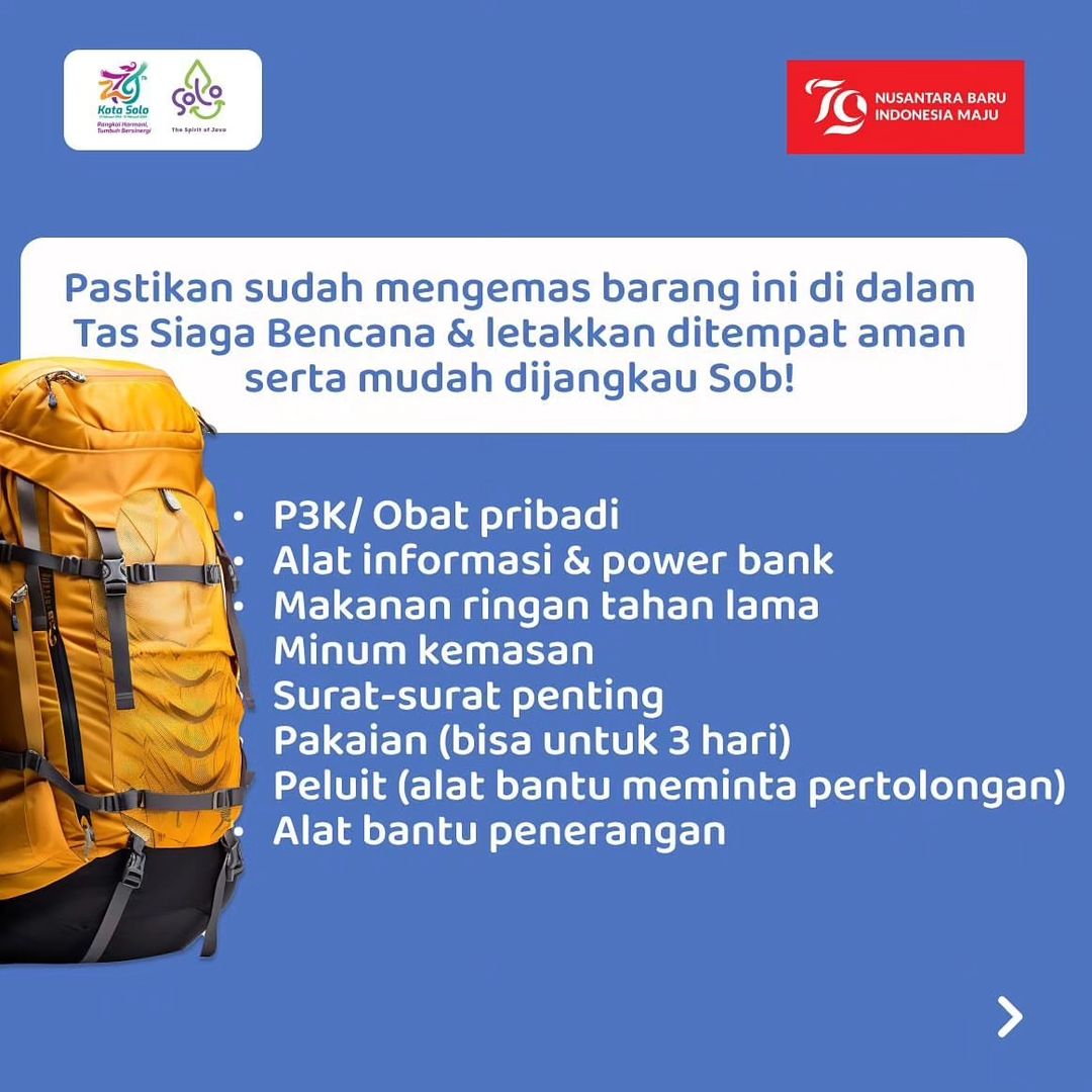 Potensi bencana merupakan sesuatu yang tidak dapat dihindarkan. Namun risiko buruk dapat dicegah dengan persiapan yang matang. Salah satunya dengan mempersiapkan keperluan berikut ini Sob!