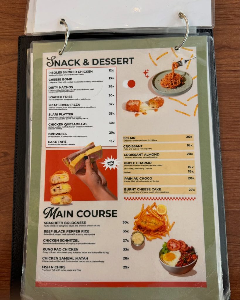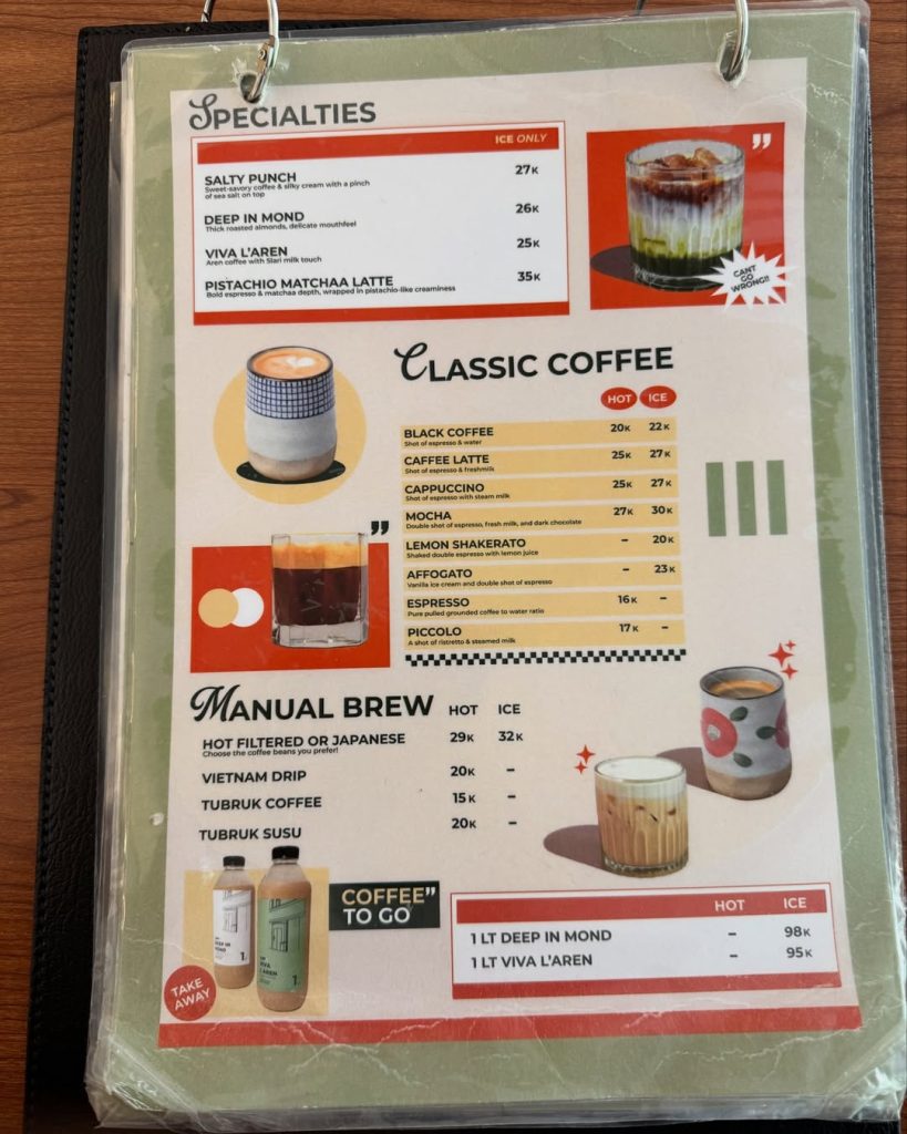 Menu di Slari Coffee juga beragam, dari espresso klasik sampai kopi susu kreatif, plus pilihan non-kopi seperti Red Velvet Latte dan Matcha Ice yang cocok buat semua selera. Suasananya ramah buat anak muda dan wisatawan, buka hampir tutup tengah malam, jadi pas banget buat ngopi sore sampai malam.