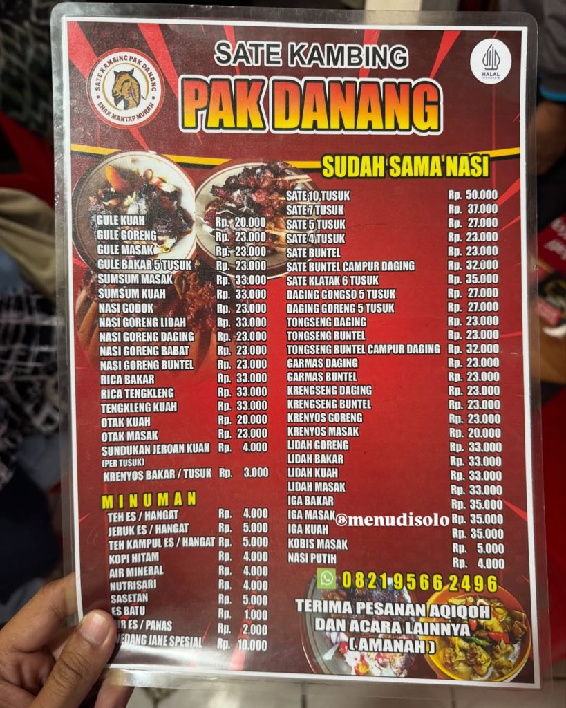 Sudah cek info Daftar Harga Menu Sate Kambing Pak Danang Kota Solo? Cari kuliner enak di Solo. Cari info Solo terbaru? Cek update Solo Info. Cek sekarang juga….