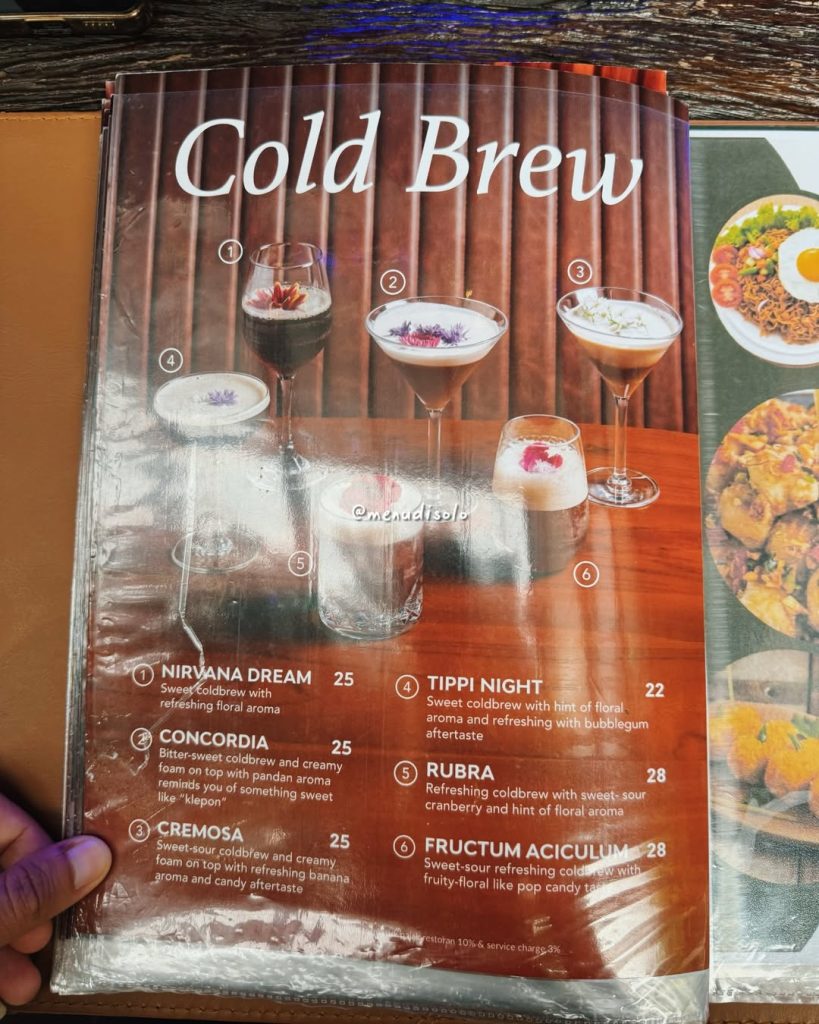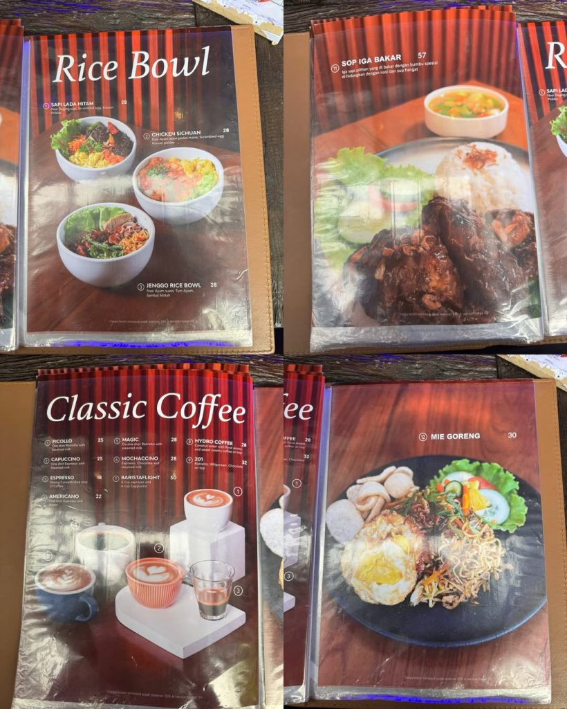 Menu di sini bukan hanya kopinya enak, tapi juga pilihan dessert dan makanan ringan yang jadi favorit banyak pengunjung. Tempatnya sering dipuji karena vibe-nya yang ramah, pelayanan yang ramah, dan harga yang bersahabat buat anak muda Solo.