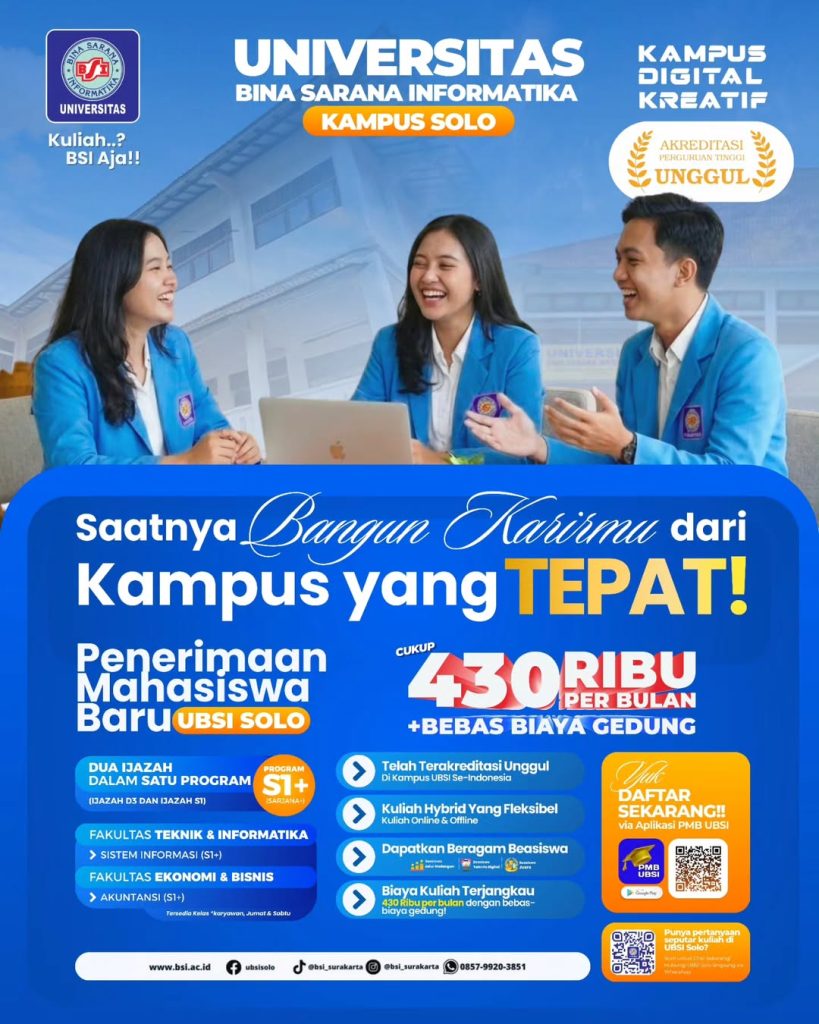 SoloInfo.id – Apa tren terbaru di Solo? Ada berbagai tren menarik di Solo nih. Temukan berbagai tren menarik di Solo dan sekitar. Kamu ingin tau tren super keren di Solo? Kamu harus simak info tren Solo ini.. Dapatkan informasi Kota Surakarta terbaru di Solo Info. Ada update solo info hari ini, Daftar Kuliah Universitas BSI Gratis Biaya Gedung di Solo?….